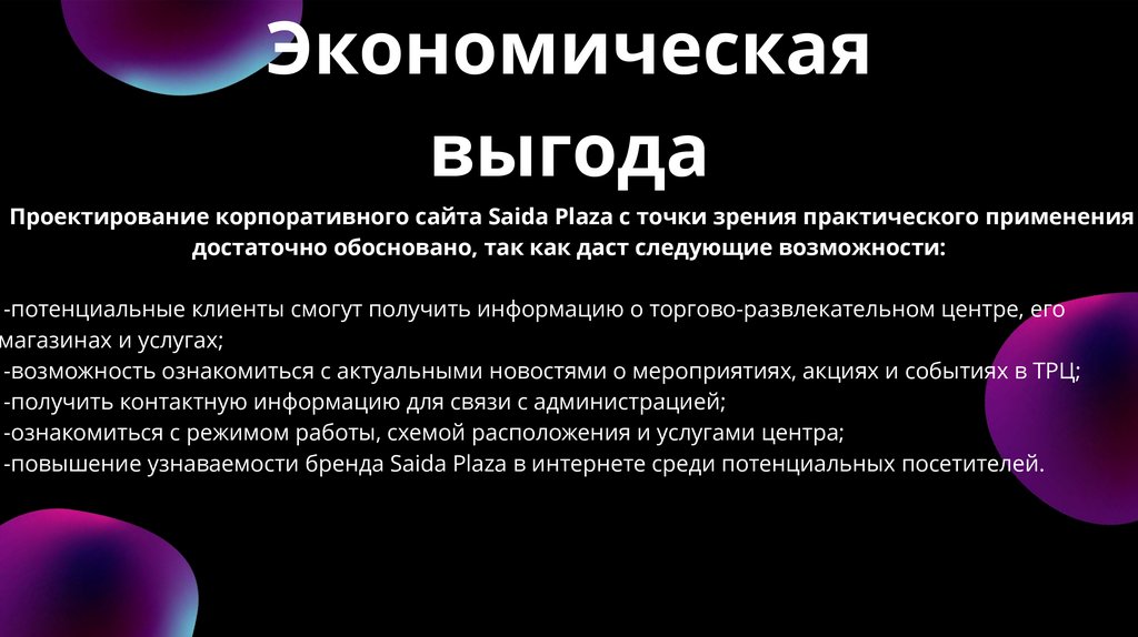 Проектирование корпоративного сайта Saida Plaza с точки зрения практического применения