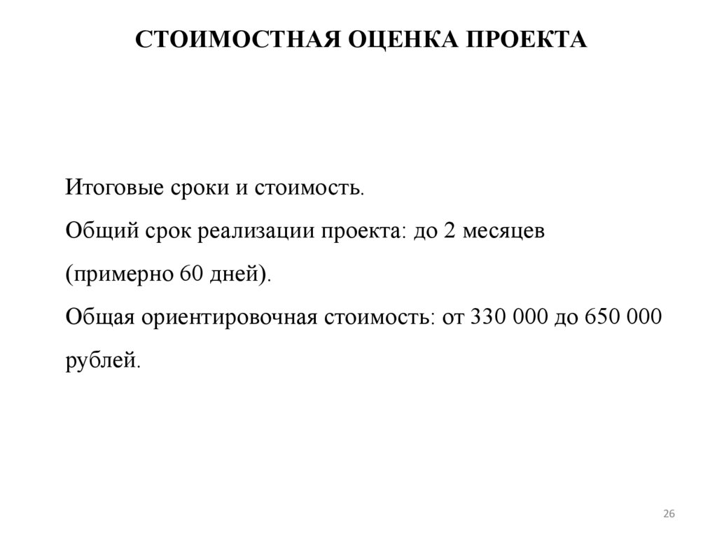СТОИМОСТНАЯ ОЦЕНКА ПРОЕКТАИтоговые сроки и стоимость.