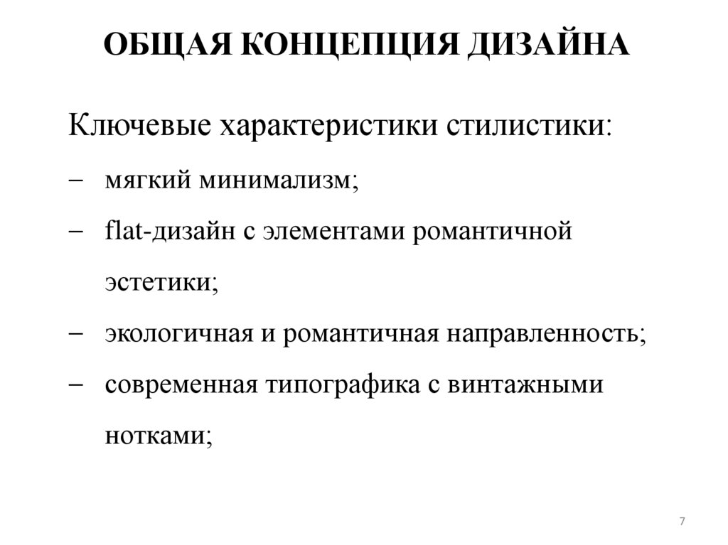 ОБЩАЯ КОНЦЕПЦИЯ ДИЗАЙНАКлючевые характеристики стилистики: