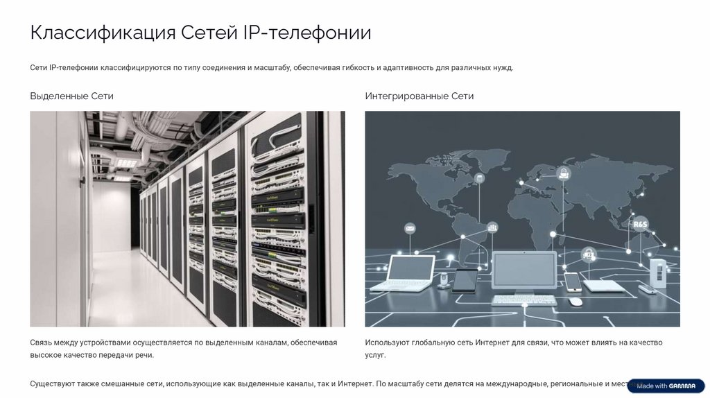 Классификация Сетей IP-телефонииСети IP-телефонии классифицируются по типу соединения и масштабу, обеспечивая гибкость и адаптивность для различных нужд.