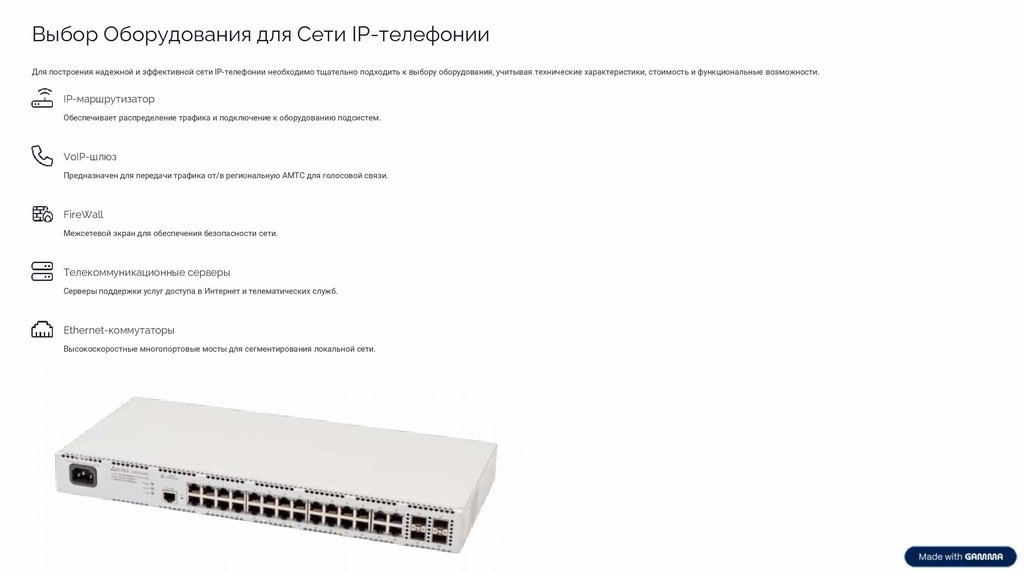 Выбор Оборудования для Сети IP-телефонииДля построения надежной и эффективной сети IP-телефонии необходимо тщательно подходить к выбору оборудования, учитывая технические характеристики, стоимость и функциональные возможности.