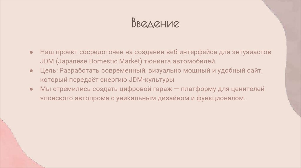 ВведениеНаш проект сосредоточен на создании веб-интерфейса для энтузиастов