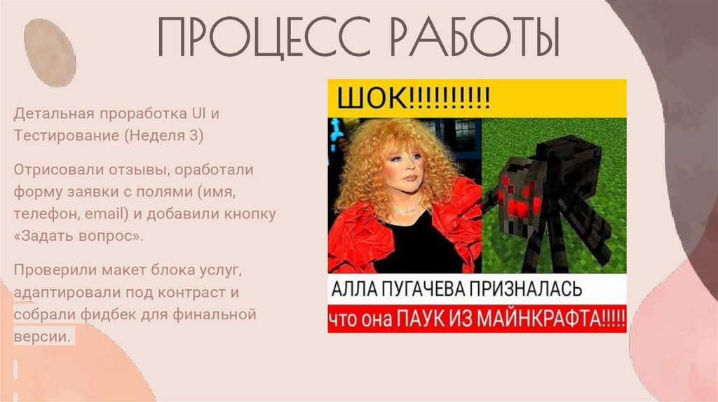 ПРОЦЕСС РАБОТЫДетальная проработка UI и