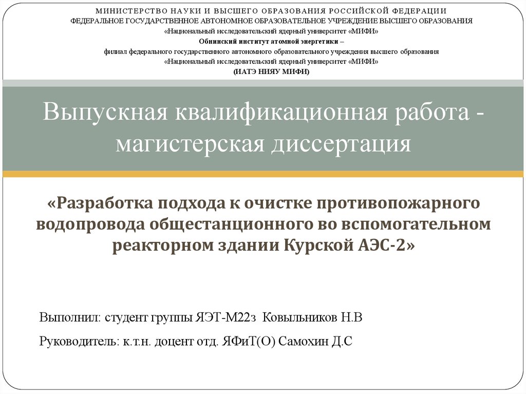 Разработка подхода к очистке противопожарного водопровода общестанционного во вспомогательном реакторном здании Курской АЭС-2