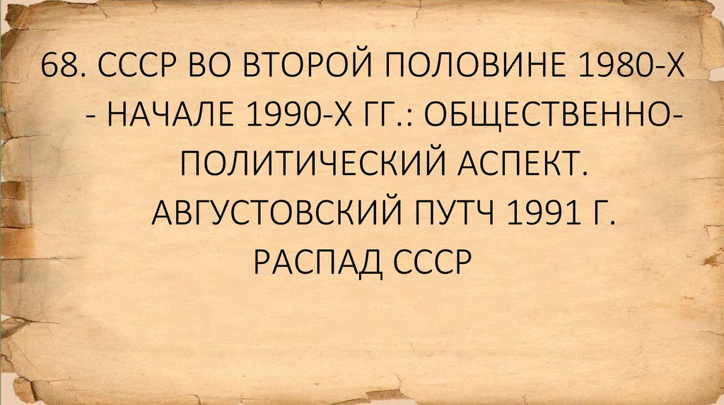 68. СССР во второй половине 1980-х - начале 1990-х гг.: общественно-политический аспект. Августовский путч 1991 г. Распад СССР