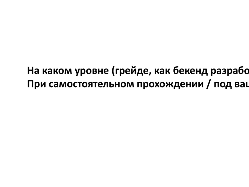 На каком уровне (грейде, как бекенд разрабоПри самостоятельном прохождении / под ваш