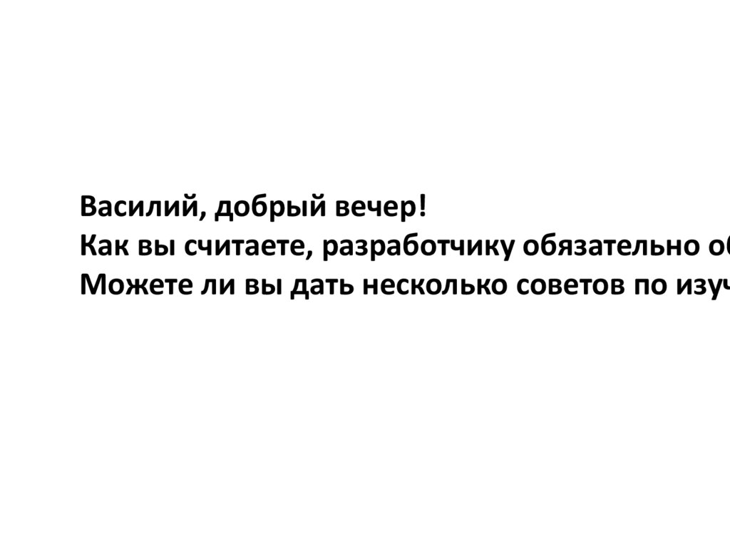 Василий, добрый вечер!Как вы считаете, разработчику обязательно об