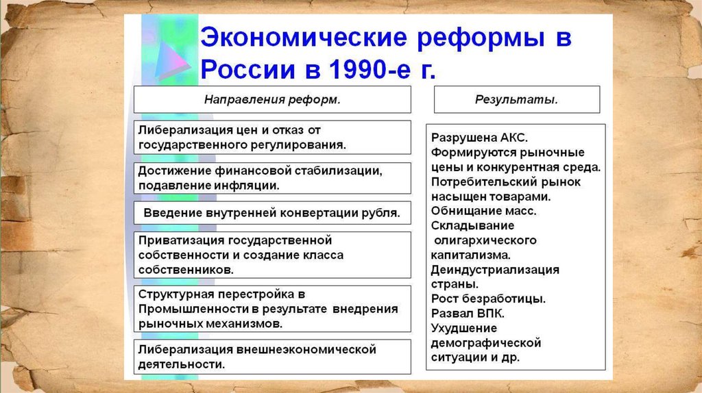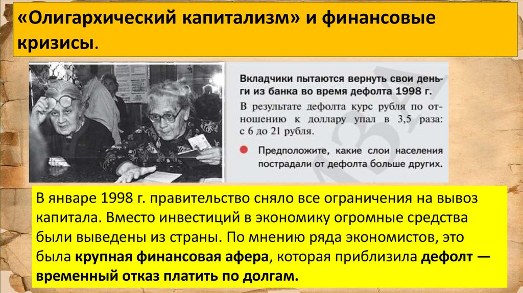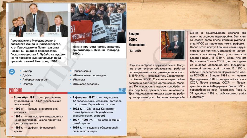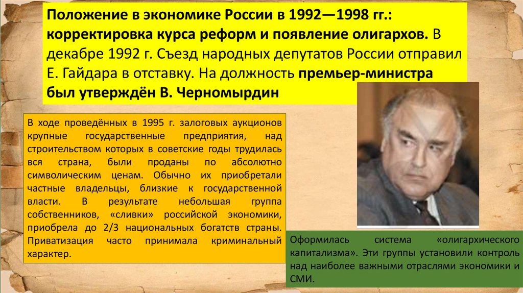 Положение в экономике России в 1992—1998 гг.:корректировка курса реформ и появление олигархов. В