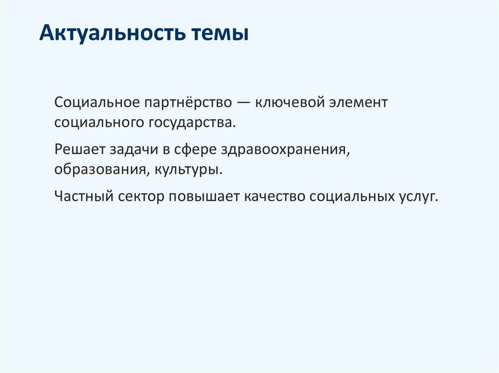 Актуальность темыСоциальное партнёрство — ключевой элемент