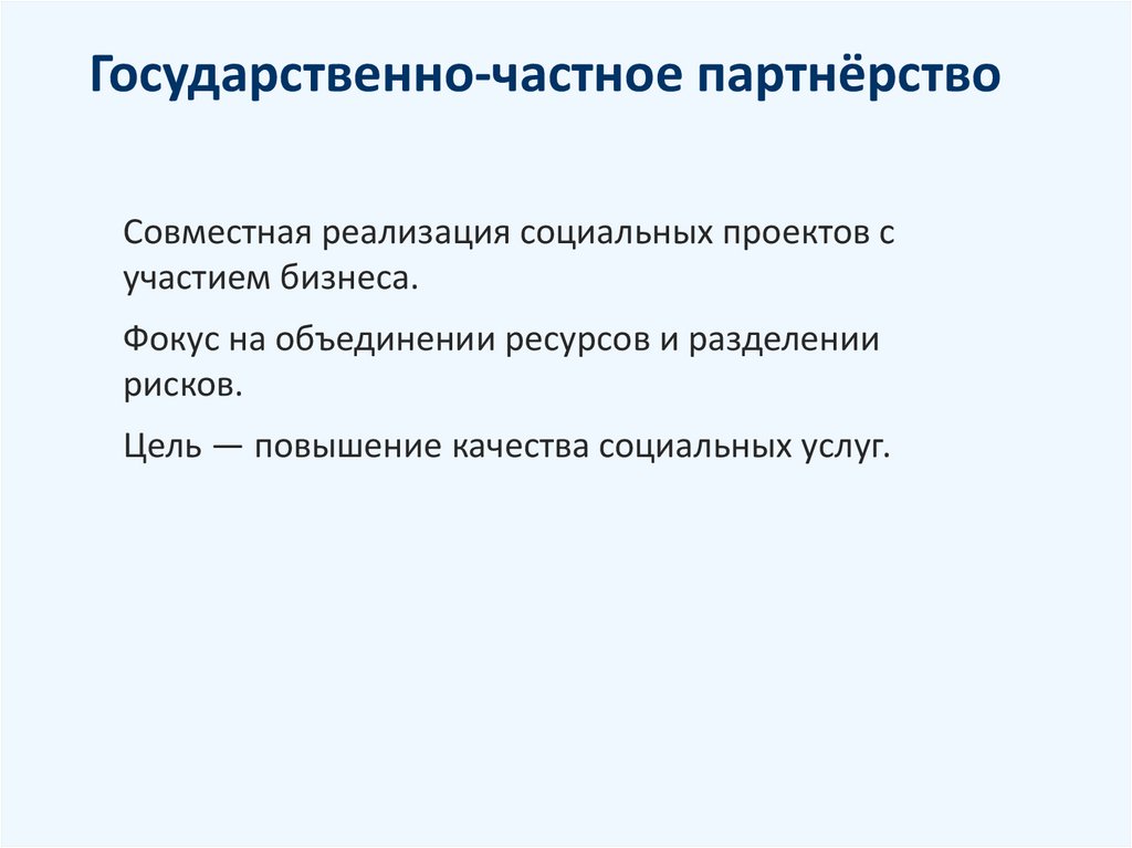 Государственно-частное партнёрствоСовместная реализация социальных проектов с