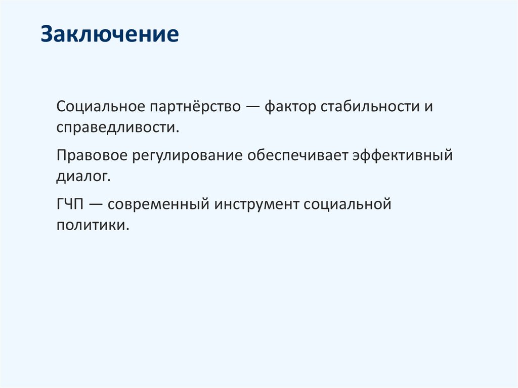 ЗаключениеСоциальное партнёрство — фактор стабильности и