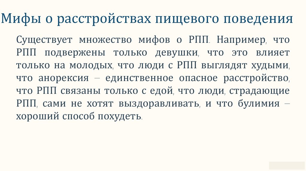 Мифы о расстройствах пищевого поведенияСуществует множество мифов о РПП. Например, что