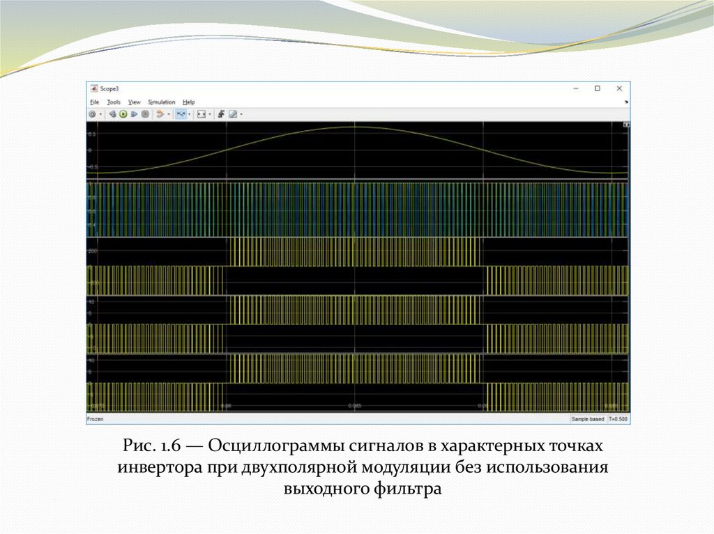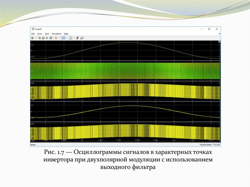 Рис. 1.7 — Осциллограммы сигналов в характерных точкахинвертора при двухполярной модуляции с использованием
