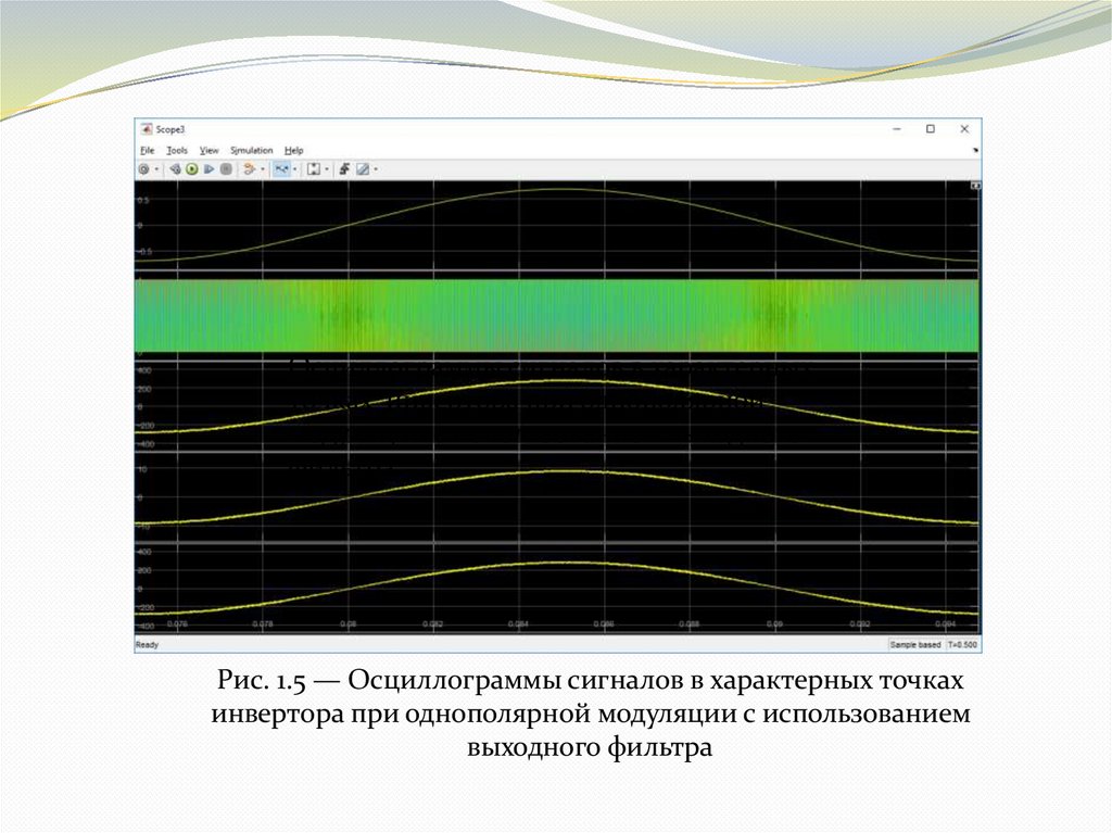 Рис. 1.4 — Осциллограммы сигналов в характерных точкахинвертора при однополярной модуляции без использования