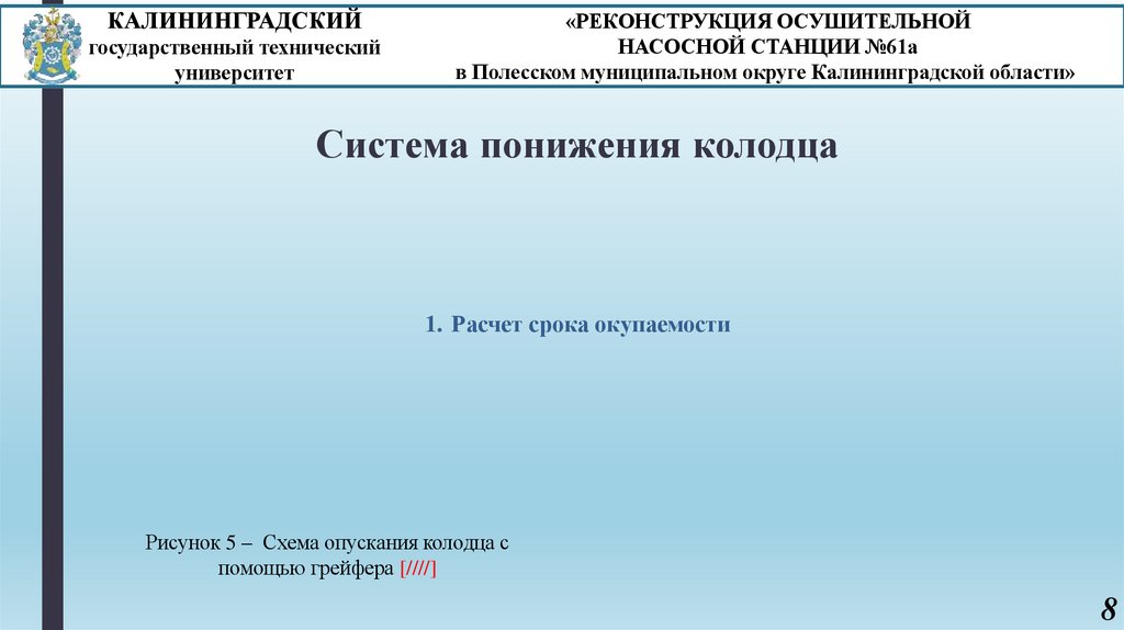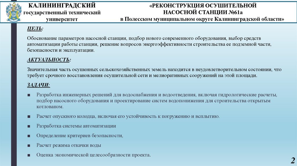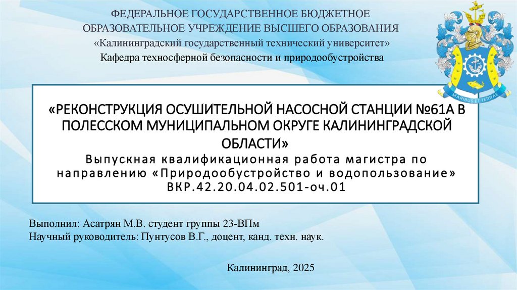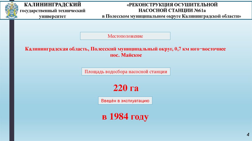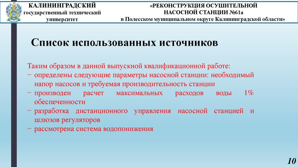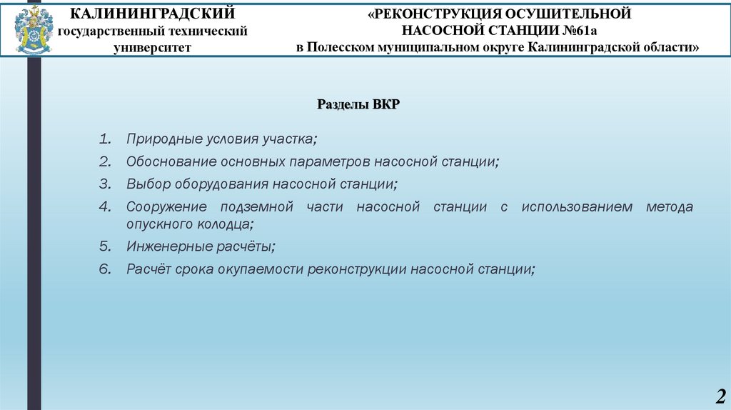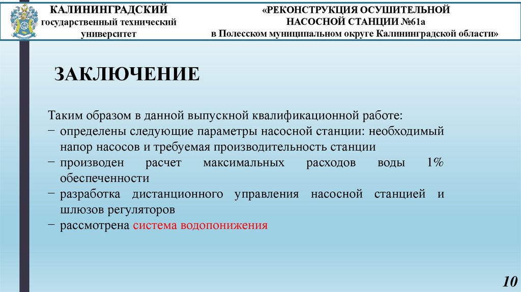 1. «реконструкция осушительной насосной станции №61А В ПОЛЕССКОМ муниципальном округе калининградской области» Выпускная