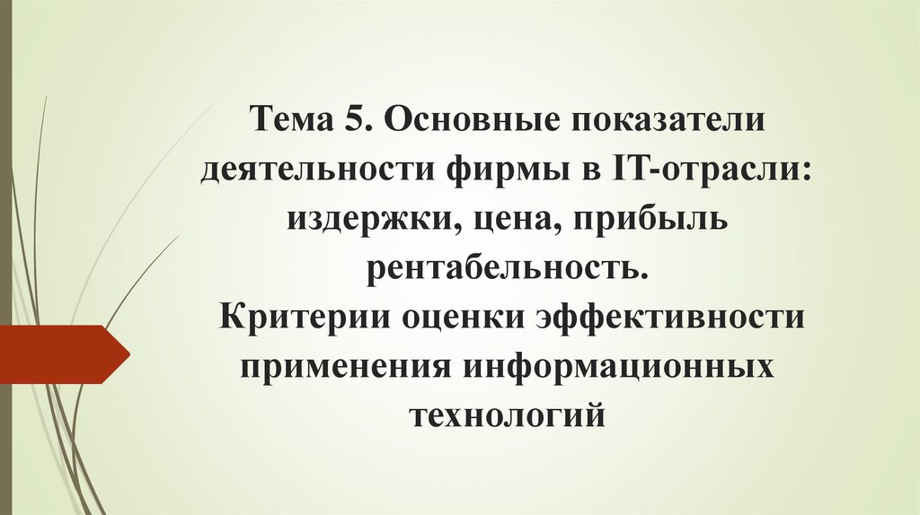 1. Тема 5. Основные показатели деятельности фирмы в IT-отрасли: издержки, цена, прибыль рентабельность. Критерии оценки