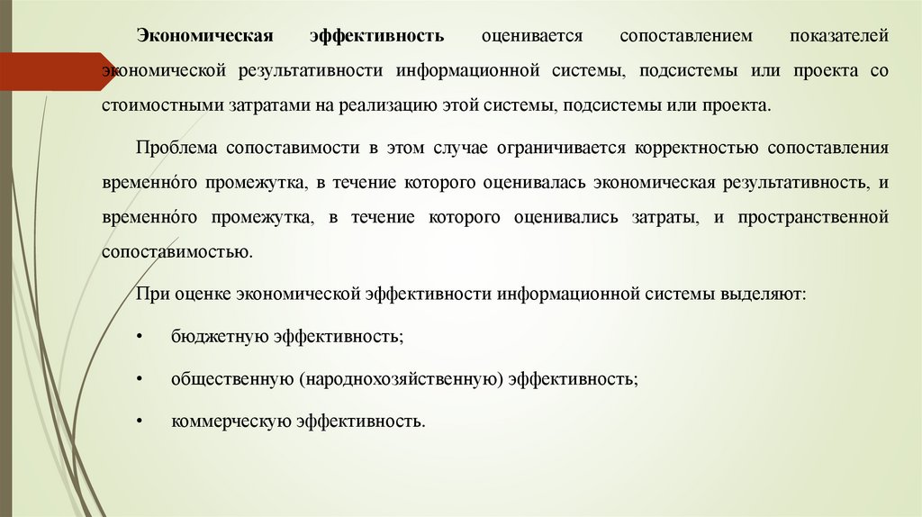 Коммерческая эффективность – это оценка информационной системы с точки зрения ее