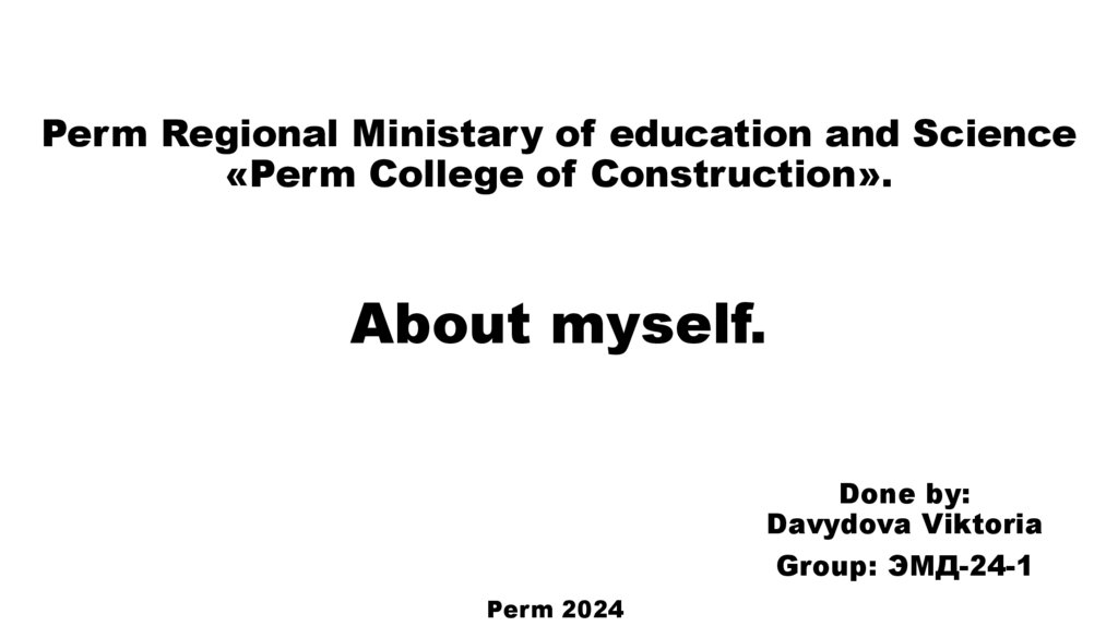 Perm Regional Ministary of education and Science «Perm College of Construction». About myself.