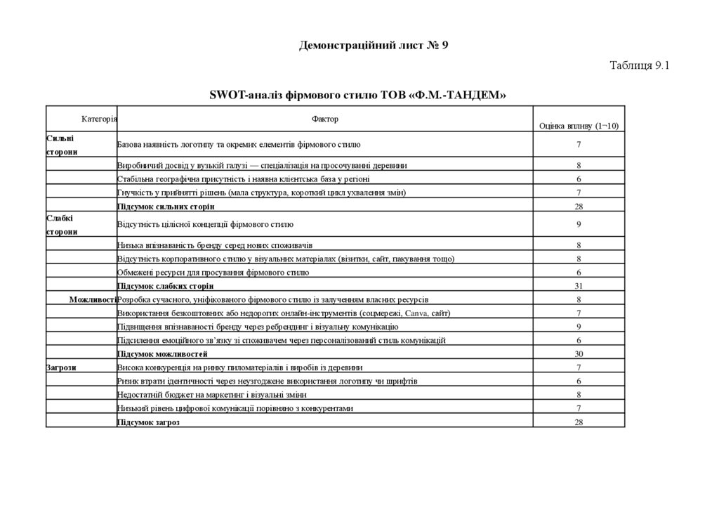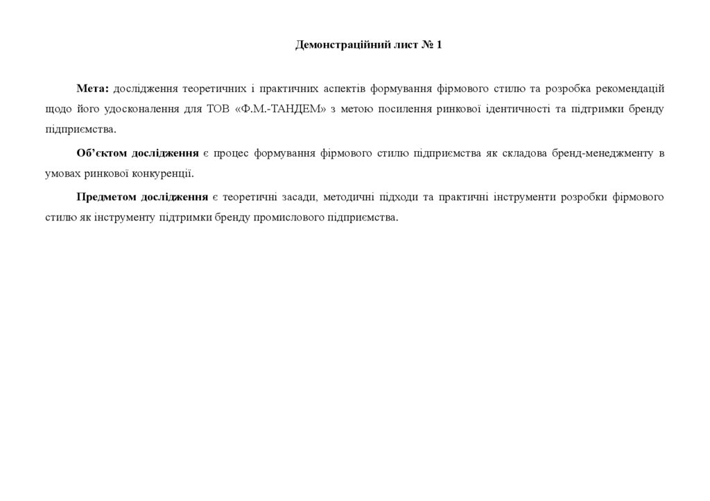 Демонстраційний лист № 1Мета: дослідження теоретичних і практичних аспектів формування фірмового стилю та розробка рекомендацій