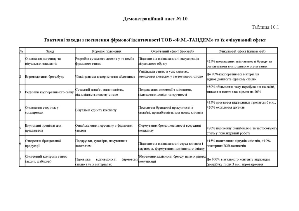 щодо його удосконалення для ТОВ «Ф.М.-ТАНДЕМ» з метою посилення ринкової ідентичності та підтримки бренду