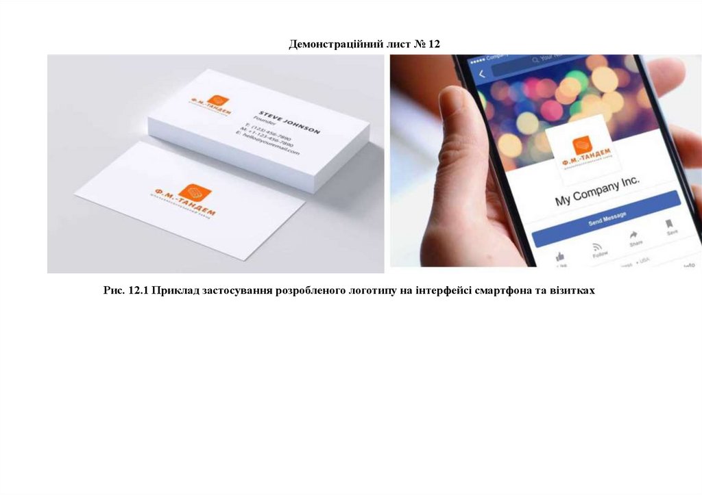 Демонстраційний лист № 12Рис. 12.1 Приклад застосування розробленого логотипу на інтерфейсі смартфона та візитках