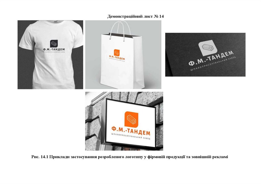 Демонстраційний лист № 14Рис. 14.1 Приклади застосування розробленого логотипу у фірмовій продукції та зовнішній рекламі