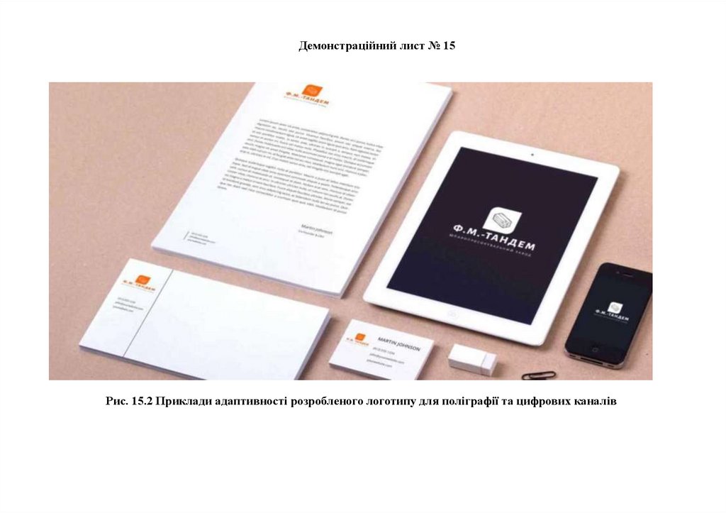 Демонстраційний лист № 15Рис. 15.2 Приклади адаптивності розробленого логотипу для поліграфії та цифрових каналів