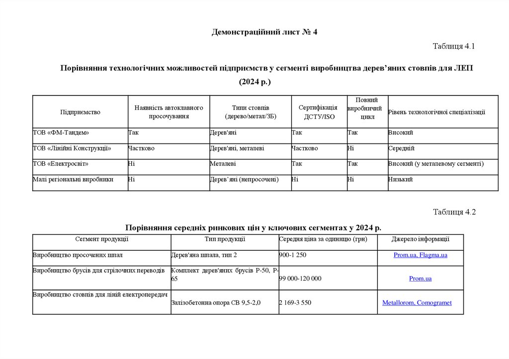 Порівняння технологічних можливостей підприємств у сегменті виробництва дерев’яних стовпів для ЛЕП