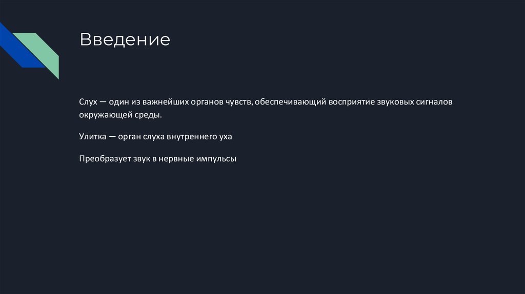 ВведениеСлух — один из важнейших органов чувств, обеспечивающий восприятие звуковых сигналов