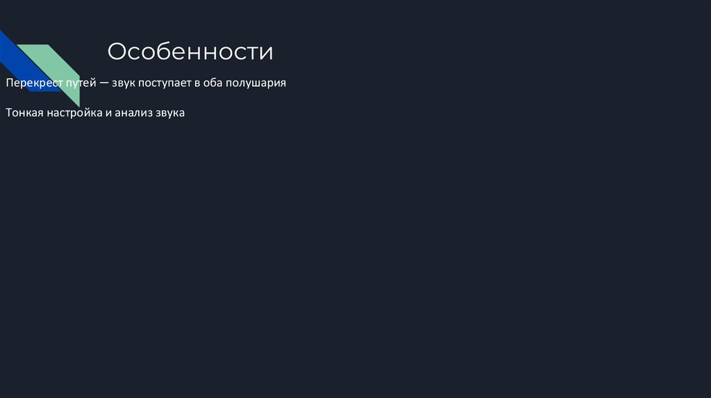ОсобенностиПерекрест путей — звук поступает в оба полушария