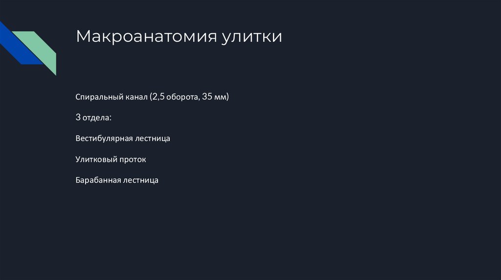 Макроанатомия улиткиСпиральный канал (2,5 оборота, 35 мм)