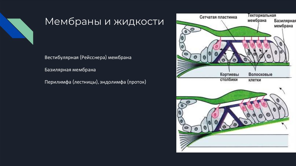 Мембраны и жидкостиВестибулярная (Рейсснера) мембрана