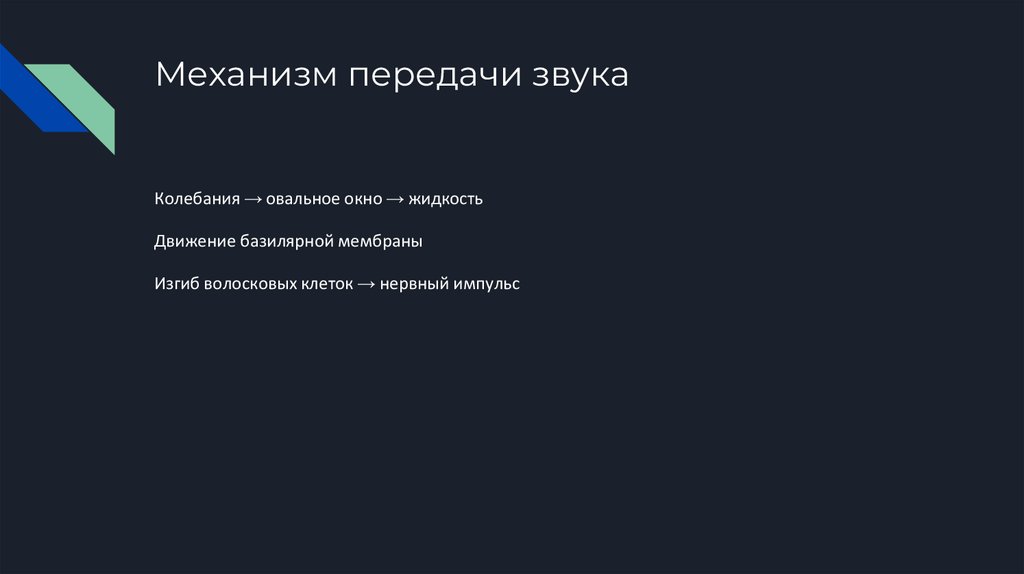 Механизм передачи звукаКолебания → овальное окно → жидкость