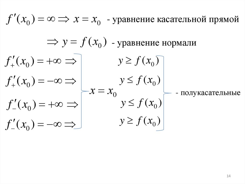 f /(x0)≠∞ называется луч yпр.к f ( x0 )( x x0 ) f ( x0 )