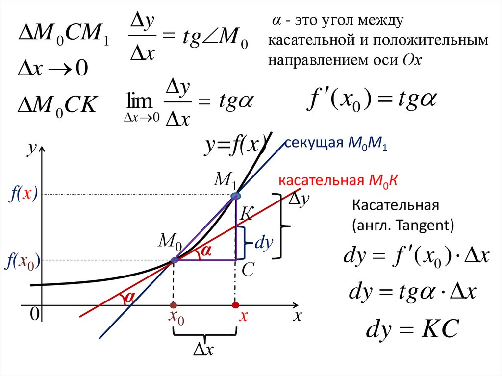 (х0+∆х; f(x0 +∆х)) приближается, двигаясь по