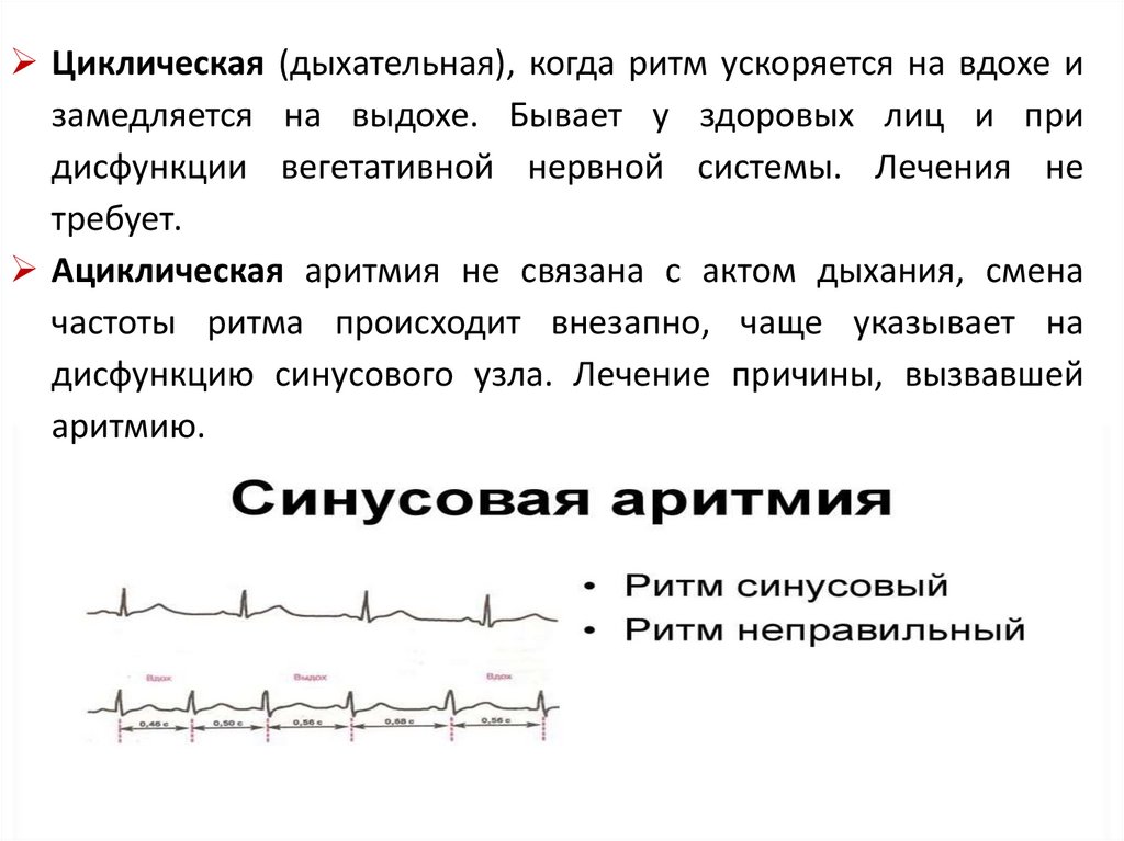 - синусовая аритмия (дыхательная)