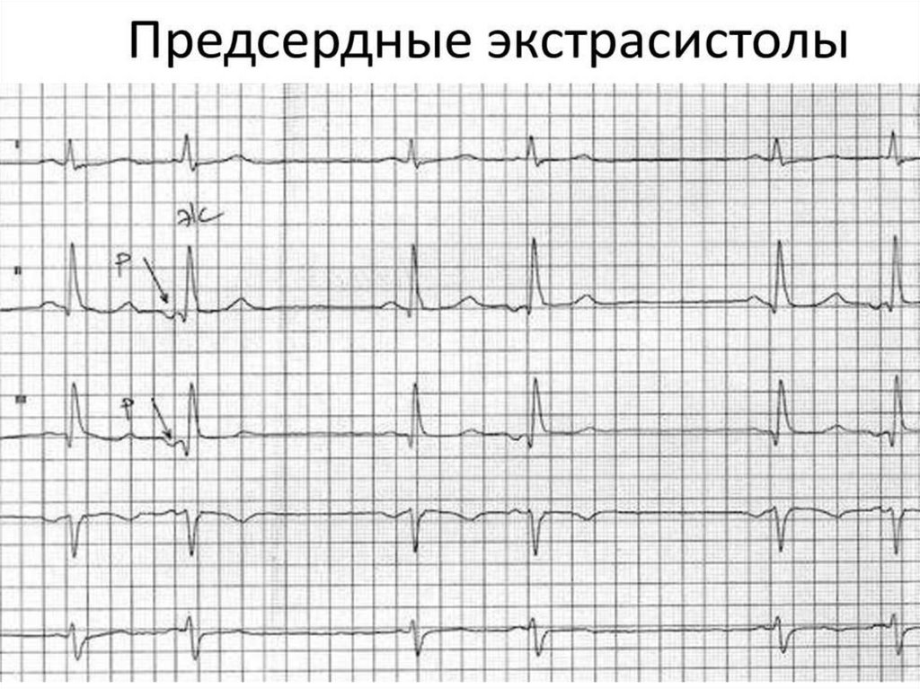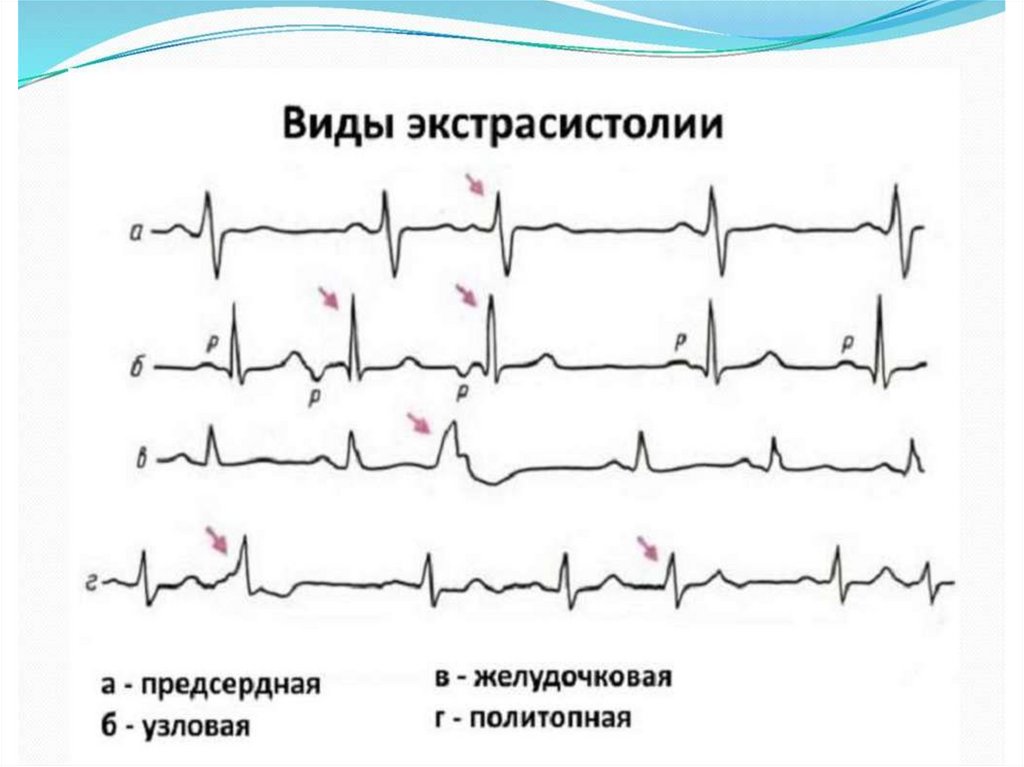 - экстрасистолия (предсердная, атриовентрикулярная,