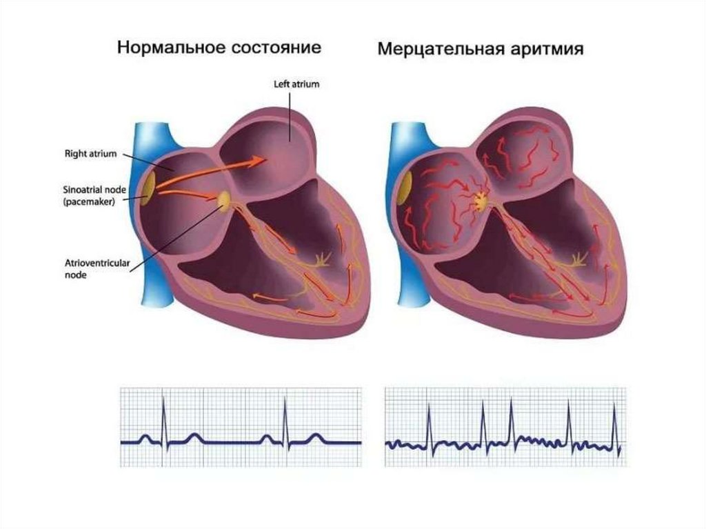 - мерцание и трепетание предсердий (мерцательная аритмия)