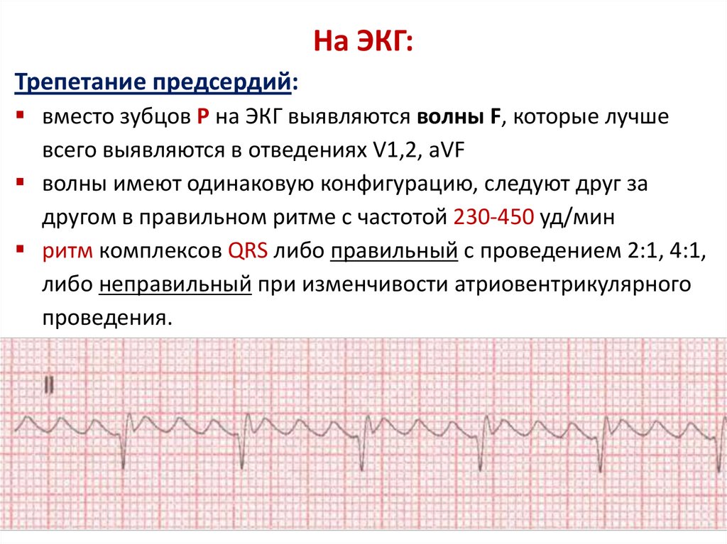 вместо зубцов Р на ЭКГ выявляются волны F, которые лучше