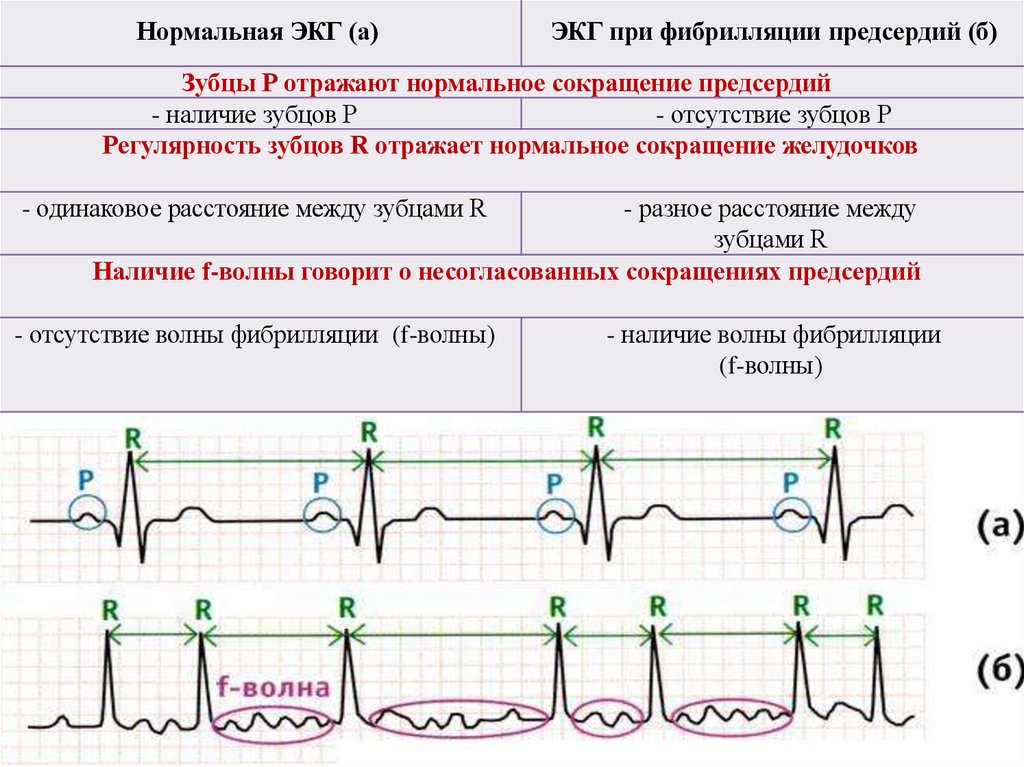 Нормальная ЭКГ (а)ЭКГ при фибрилляции предсердий (б)