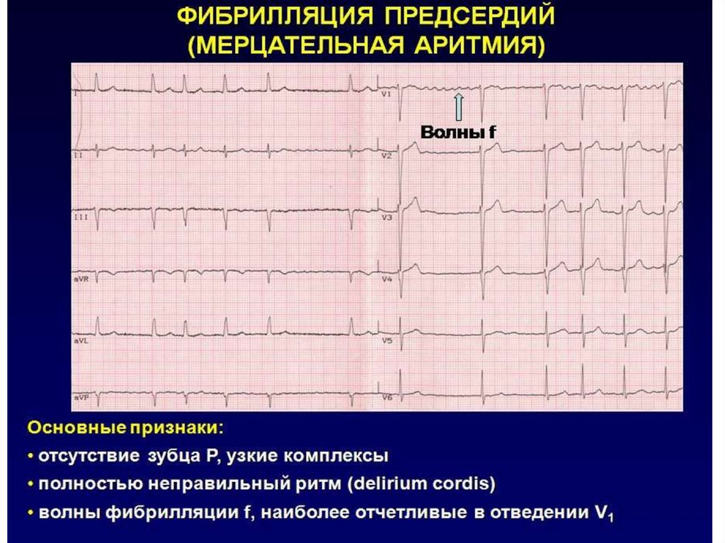 Наличие f-волны говорит о несогласованных сокращениях предсердий