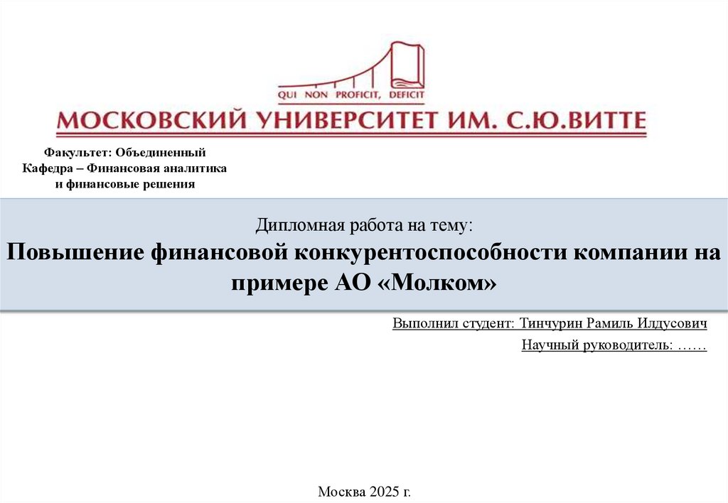 Повышение финансовой конкурентоспособности компании на примере АО «Молком»