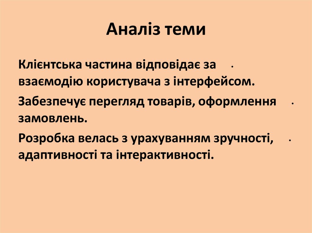 Аналіз темиКлієнтська частина відповідає за ⦁