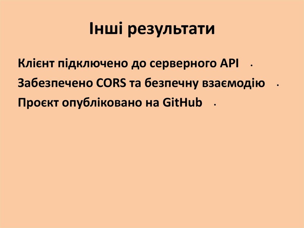 ВисновкиБуло реалізовано сучасну клієнтську ⦁