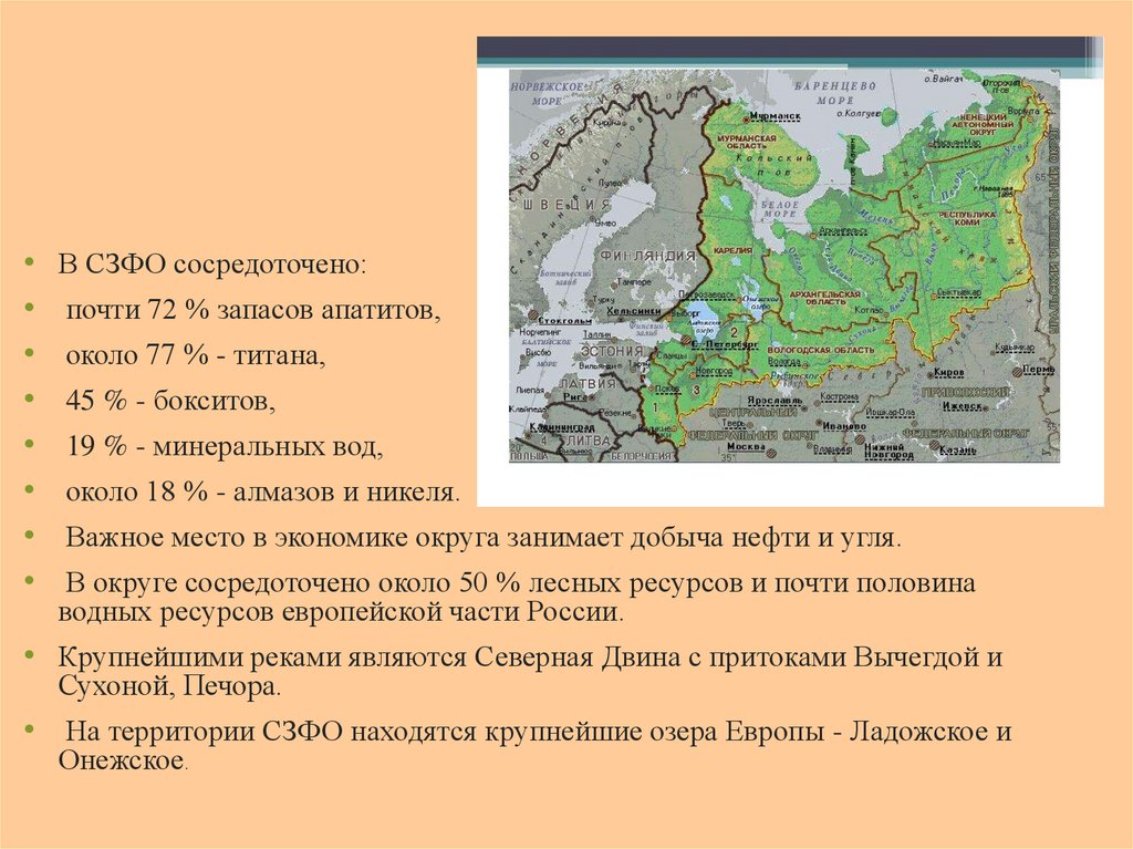 • На территории СЗФО находятся крупнейшие озера Европы - Ладожское и