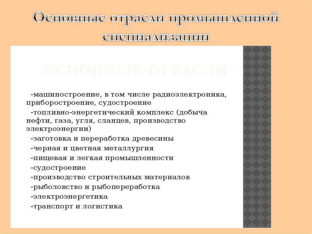 • Основные отрасли специализации сельского хозяйства:
