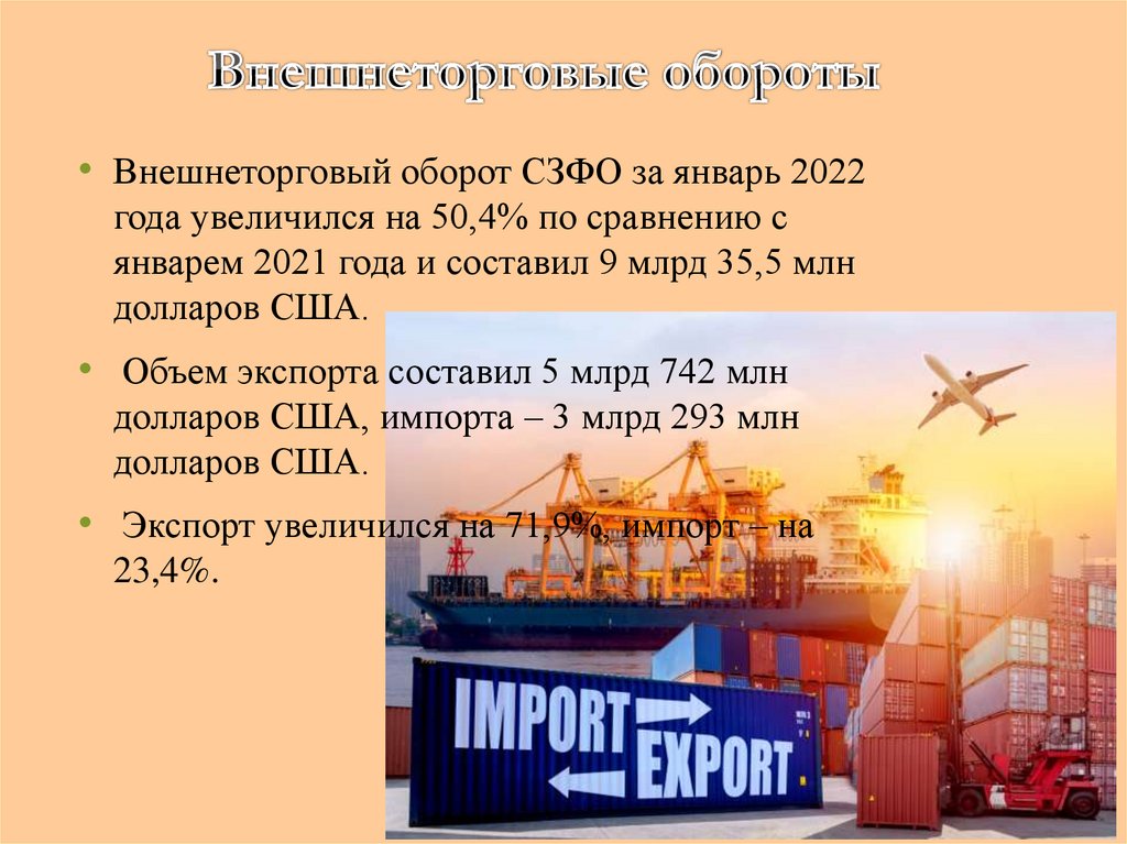 • Внешнеторговый оборот СЗФО за январь 2022года увеличился на 50,4% по сравнению с