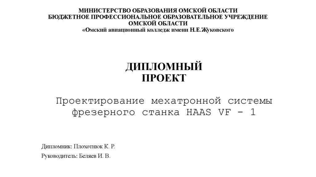 1. ДИПЛОМНЫЙ ПРОЕКТ Проектирование мехатронной системы фрезерного станка HAAS VF - 1