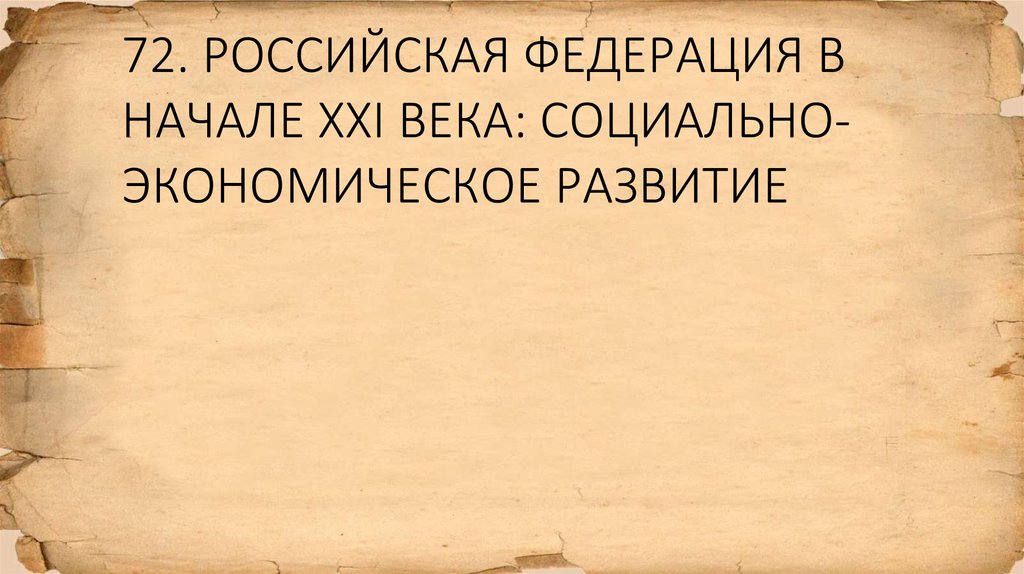 72. РОССИЙСКАЯ ФЕДЕРАЦИЯ ВНАЧАЛЕ XXI ВЕКА: СОЦИАЛЬНОЭКОНОМИЧЕСКОЕ РАЗВИТИЕ