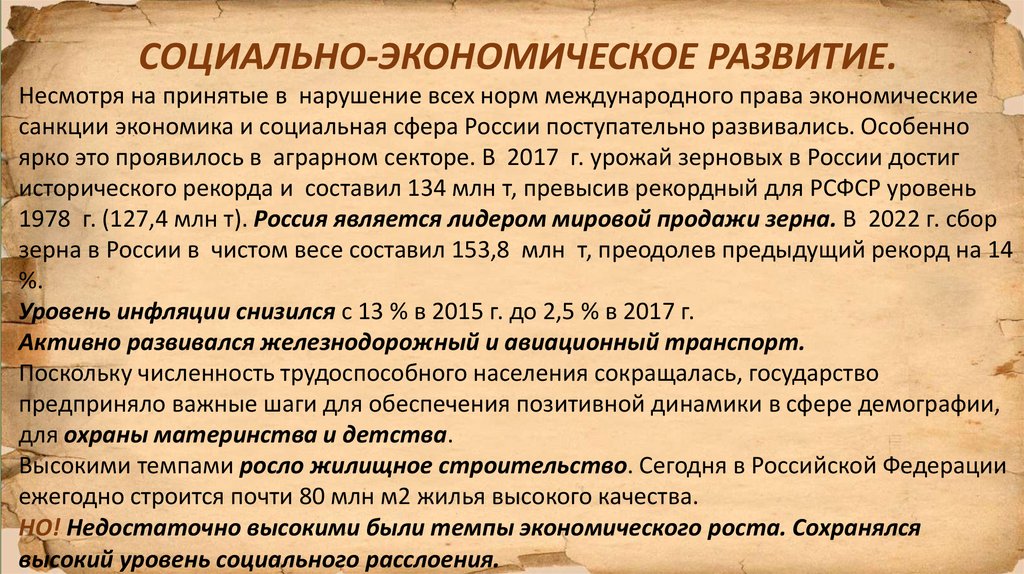 санкции экономика и социальная сфера России поступательно развивались. Особенно